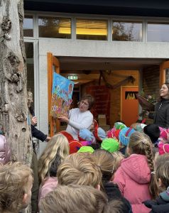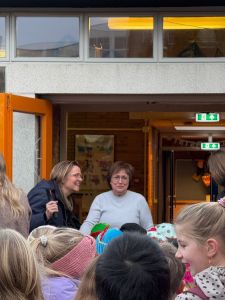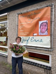 Vanochtend hebben we met de hele school juf Erna in het zonnetje gezet. Zij viert haar jubileum: 40 jaar werkzaam in het onderwijs! Een bijzondere mijlpaal. Van harte gefeliciteerd Erna!