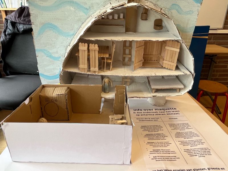 en Quinn en Dilara (groep 8) met hun onderzoeksstation.